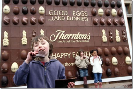 Feito com 128 placas de chocolate, 72 ovos gigantes e 10 coelhos de chocolate este foi o primeiro outdoor completamente comestível do mundo. Ele pesava 390 quilos e foram necessárias apenas 3 horas para que ele fosse completamente consumido pelos clientes da empresa.