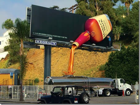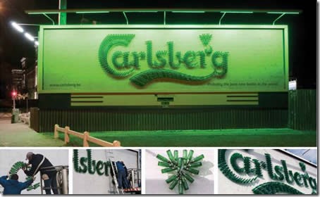500 garrafas usadas foram usadas para criar este outdoor para uma marca de cervejas. Tomara que elas tenham sido recicladas depois.