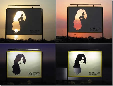Para mostrar que o produto (uma tinta para cabelos) é feito de ingredientes naturais este outdoor faz uso da paisagem ao retratar as mudanças nas cores do cabelo da modelo.