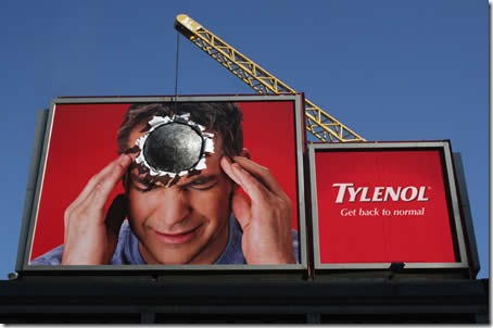 Para fazer o anúncio de um remédio que acaba com a dor de cabeça, uma agência de Toronto criou este outdoor, que mostra bem como se sente quem precisa do produto.